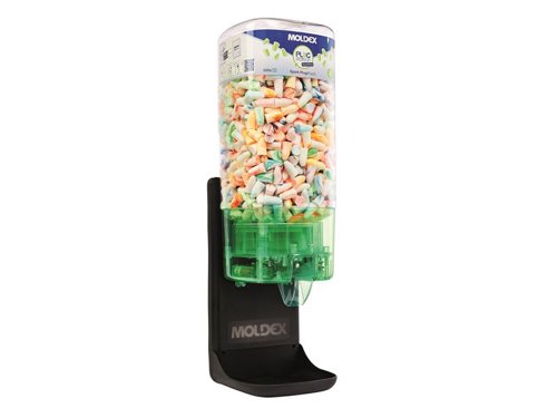 Moldex Spark Plugs® TouchFree PlugStation 500 for maximum hygiene. The sensor-controlled, battery-operated dispenser distributes one pair of earplugs at a time. Supplied with 500 pairs of Spark Plugs® earplugs, SNR 35 dB and a Wall Mount (MOL7060). Can be refilled when required.